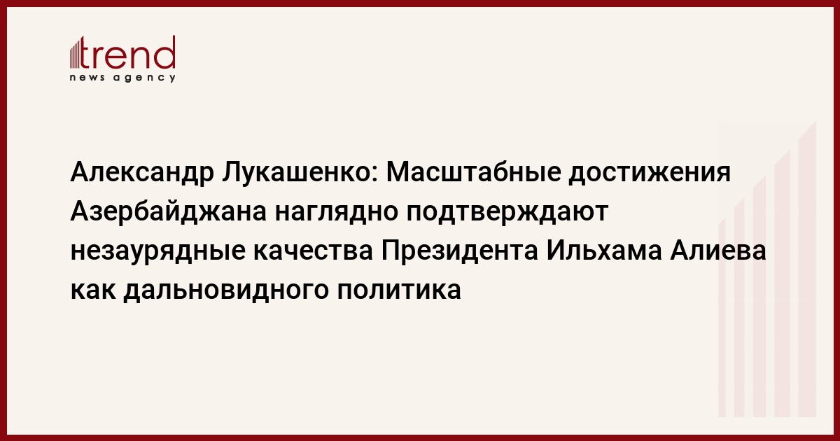 Масштабные достижения Азербайджана наглядно подтверждают Ваши незаурядные качества государственного лидера, дальновидного политика и истинного патриота своей страны.