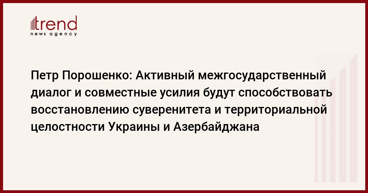 Высоко ценю доверие и взаимопонимание, которые сложились между нами. Уверен, что активный межгосударственный диалог и наши совместные усилия будут способствовать восстановлению суверенитета и территориальной целостности Украины и Азербайджанской Республики.