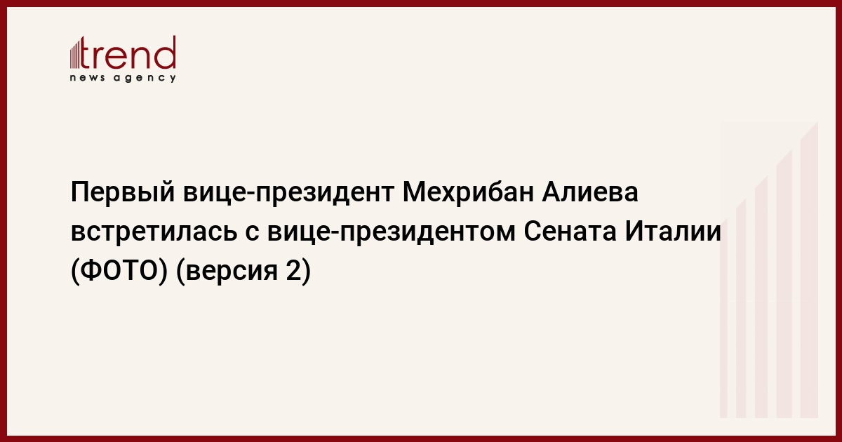 БАКУ /Trend/ - Первый вице-президент Азербайджана Мехрибан Алиева в четверг встретилась с вице-президентом Сената Италии Линдой Ланцилотта.