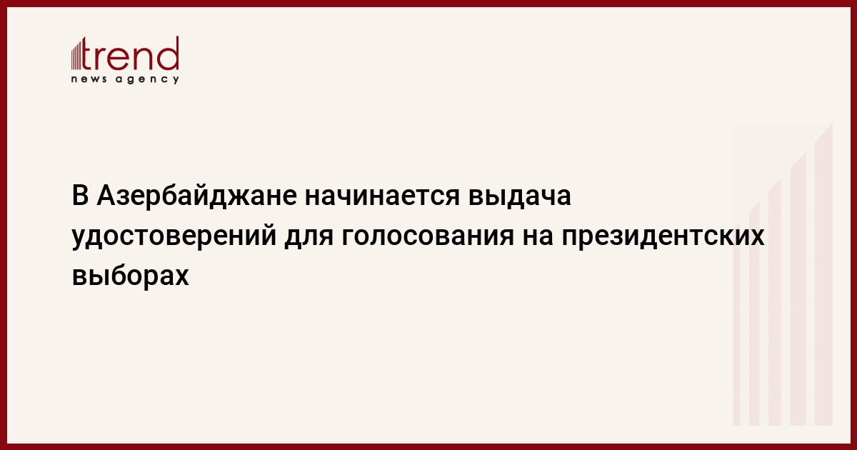 БАКУ /Trend/ - С сегодняшнего дня в Азербайджане стартует выдача гражданам соответствующими участковыми избирательными комиссиями открепительных удостоверений (удостоверений для голосования) в связи с предстоящими 11 апреля президентскими выборами.
