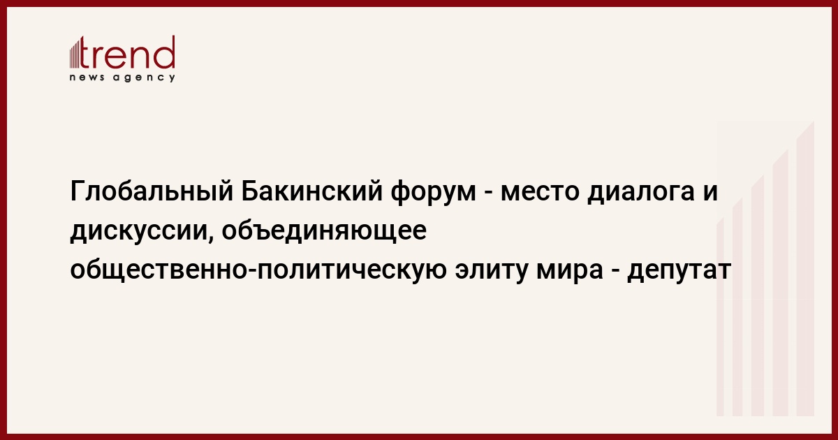 Отметив, что Глобальный Бакинский форум внес вклад в межгосударственное сотрудничество, политические отношения, создал благоприятные условия для взаимного политического диалога, депутат добавила, что форум, с учетом его значимости, выйдя за рамки обсуждений локальных и региональных конфликтов, превратился в международную платформу, выражающую свое отношение к происходящим в мире процессам, открывающую путь для обсуждения путей решения глобальных проблем.
