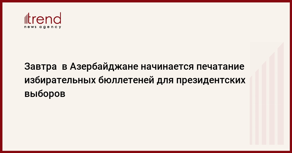 БАКУ /Trend/ - С завтрашнего дня начнется печатание избирательных бюллетеней для президентских выборов в Азербайджане, назначенных на 11 апреля.