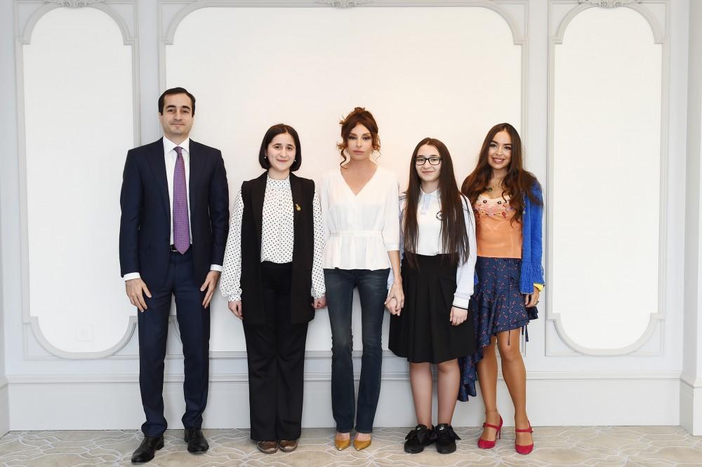 БАКУ /Trend/ - Первый вице-президент Азербайджана Мехрибан Алиева в пятницу встретилась с юными азербайджанскими изобретателями - учредителями всемирно известного стартапа Рейнерджи (Rainergy) Рейхан Джамаловой и Захрой Гасымзаде.