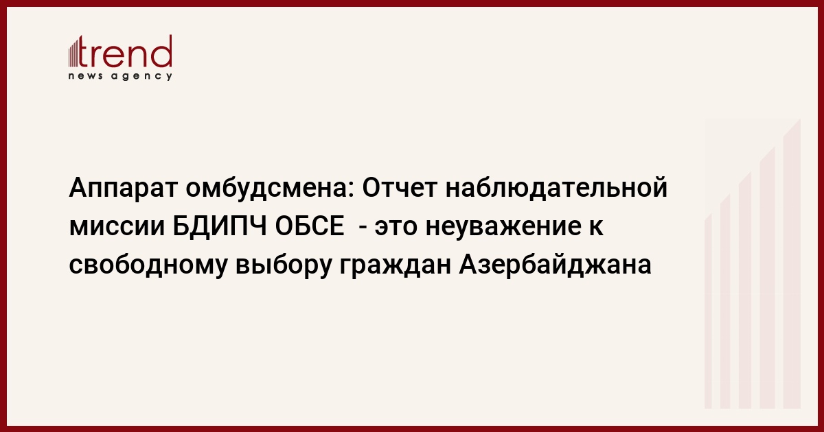 БАКУ /Trend/ - Предварительный отчет Бюро по демократическим институтам и правам человека (БДИПЧ) ОБСЕ, Парламентской ассамблеи (ПА) ОБСЕ и Парламентской ассамблеи (ПА) Совета Европы относительно прошедших 11 апреля в Азербайджане президентских выборов не отражает реальности.