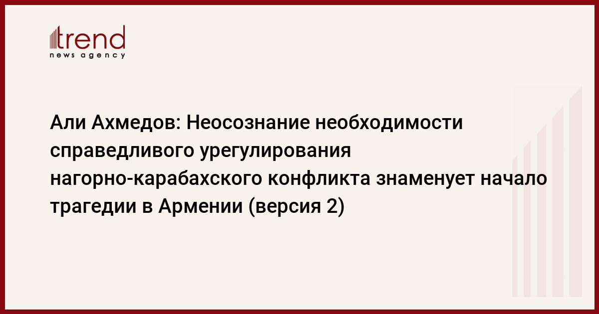 БАКУ /Trend/ - Неосознание пришедшей к власти в Армении силой необходимости справедливого урегулирования нагорно-карабахского конфликта знаменует начало трагедии в Армении, считает вице-премьер, председатель партии - исполнительный секретарь «Ени Азербайджан» Али Ахмедов.