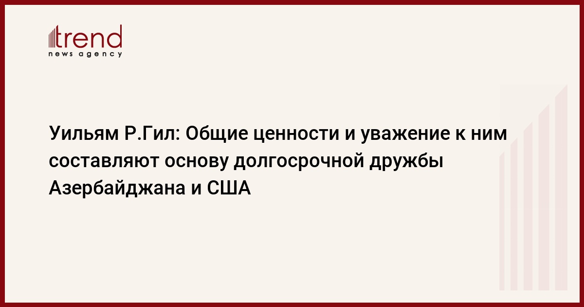 "Соединенные Штаты Америки строят самое глубокое сотрудничество со странами, которые разделяют их общие интересы, ценности и стремления. Поэтому мы присоединяемся к празднованию азербайджанцами 100-летия Азербайджанской Демократической Республики и продолжим поддержку построения еще более развитого, независимого и демократического будущего для себя и Азербайджана", - подытожил Гил.