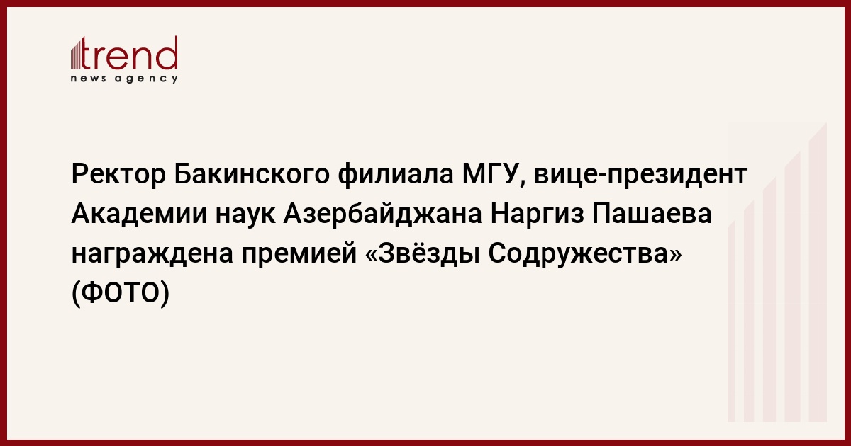 Для получения премии «Звёзды Содружества» за научную и гуманитарную деятельность на сцену была приглашена ректор Бакинского филиала Московского государственного университета имени М.В. Ломоносова, вице-президент Национальной Академии наук Азербайджана, академик НАНА Наргиз Пашаева. Выражая признательность участникам и организаторам Форума за высокую оценку, данную её деятельности, профессор Наргиз Пашаева сказала: