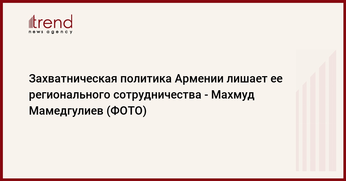 БАКУ /Trend/ - Захватническая политика Армении лишает ее регионального сотрудничества.