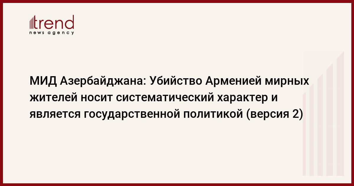 По его словам, подобные деяния Армении - грубое нарушение международного гуманитарного права, в частности обязательств по Женевской конвенции. Все это показывает, что убийство армянскими вооруженными силами мирных жителей не является случайностью, а носит систематический характер и является государственной политикой, включенной в учебный процесс вооруженных сил.