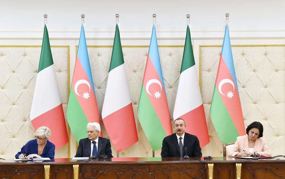 БАКУ /Trend/ - По завершении встречи в расширенном составе в среду состоялась церемония подписания документов с участием Президента Азербайджана Ильхама Алиева и Президента Италии Серджо Маттареллы.