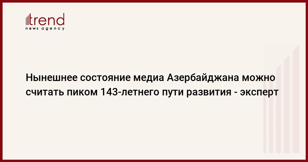 БАКУ /Trend/ - Медиа Азербайджана прошли большой путь развития, нынешнее их состояние можно считать пиком 143-летнего пути развития.