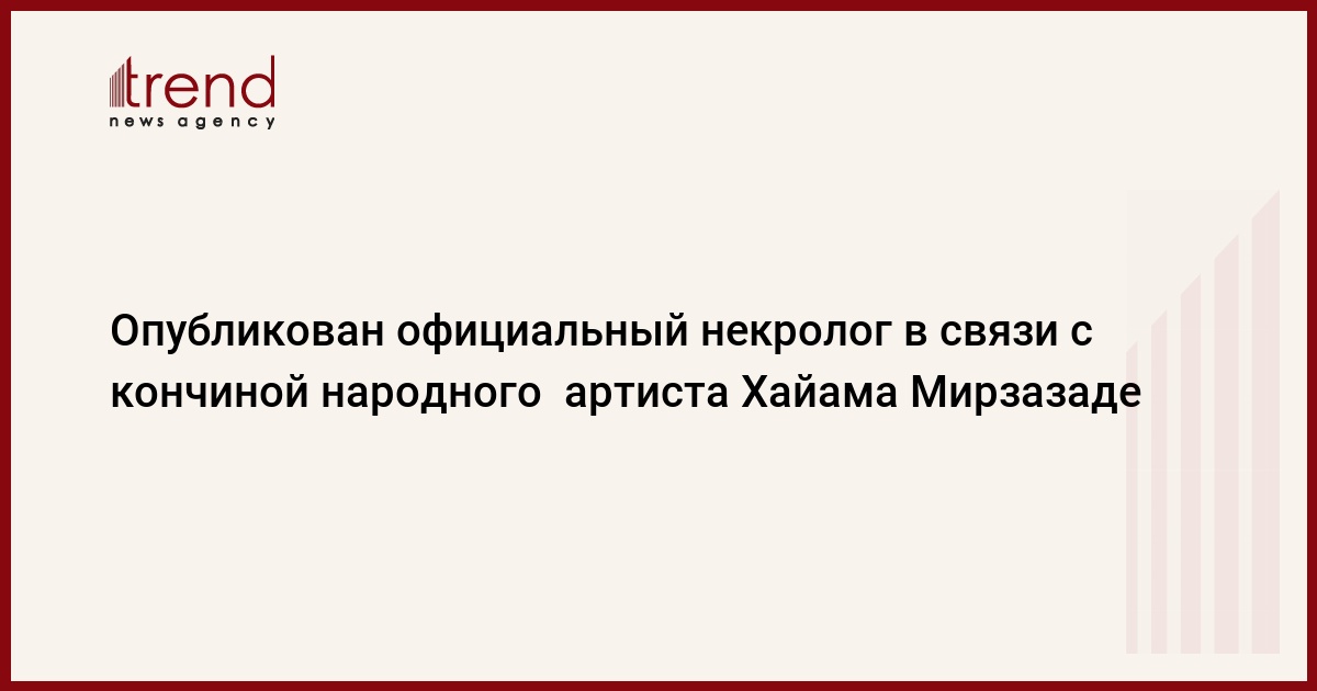 БАКУ /Trend/ - Президент Азербайджана Ильхам Алиев, официальные лица государства и правительства, деятели искусства подписались под некрологом в связи с кончиной народного артиста Хайама Хади оглу Мирзазаде.