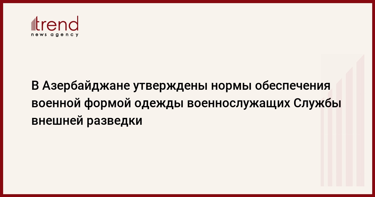 БАКУ /Trend/ - В Азербайджане утверждены нормы обеспечения военной формой одежды военнослужащих Службы внешней разведки.