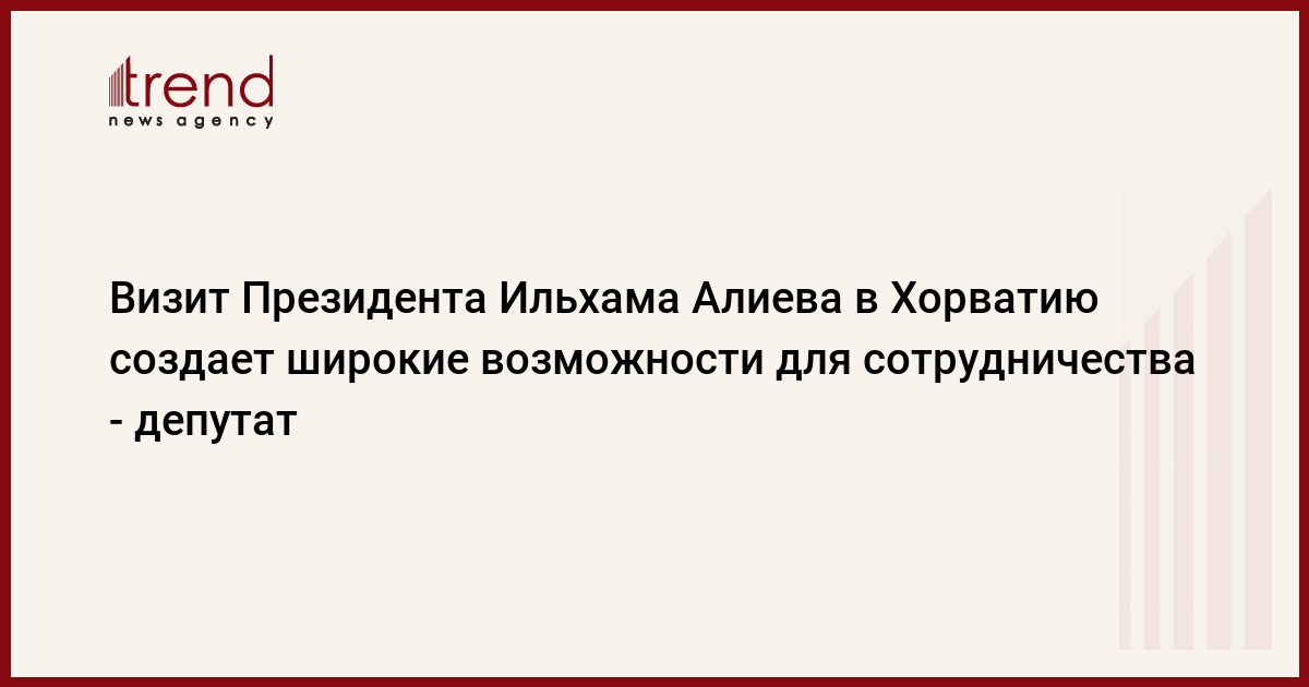 По словам депутата, Президент Ильхам Алиев в рамках своего визита заявил, что Азербайджан с Хорватией являются стратегическими партнерами, и сказал, что этот визит придаст большой импульс укреплению двустороннего сотрудничества.