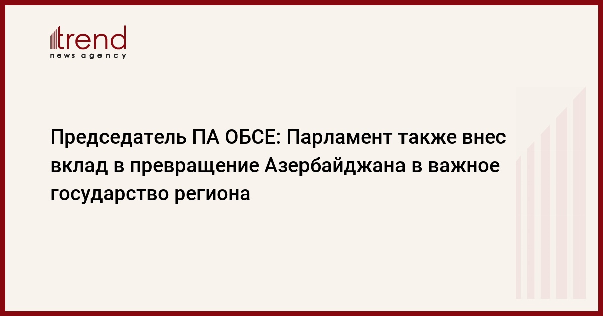 БАКУ /Trend/ - Парламент также внес вклад в превращение Азербайджана в важное государство региона. Об этом сказал председатель Парламентской Ассамблеи ОБСЕ Георгий Церетели, выступая на торжественном заседании, посвященном 100-летию азербайджанского парламента.
