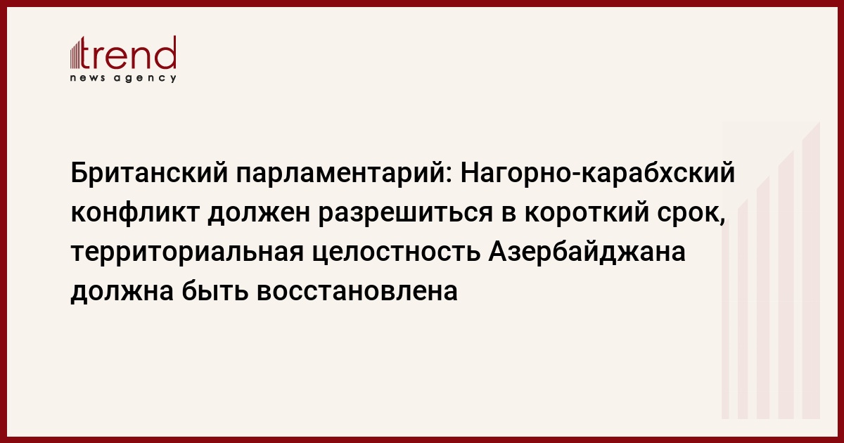 Депутат британского парламента отметил важность выполнения резолюций Совета Безопасности ООН, связанных с армяно-азербайджанским нагорно-карабахским конфликтом.
