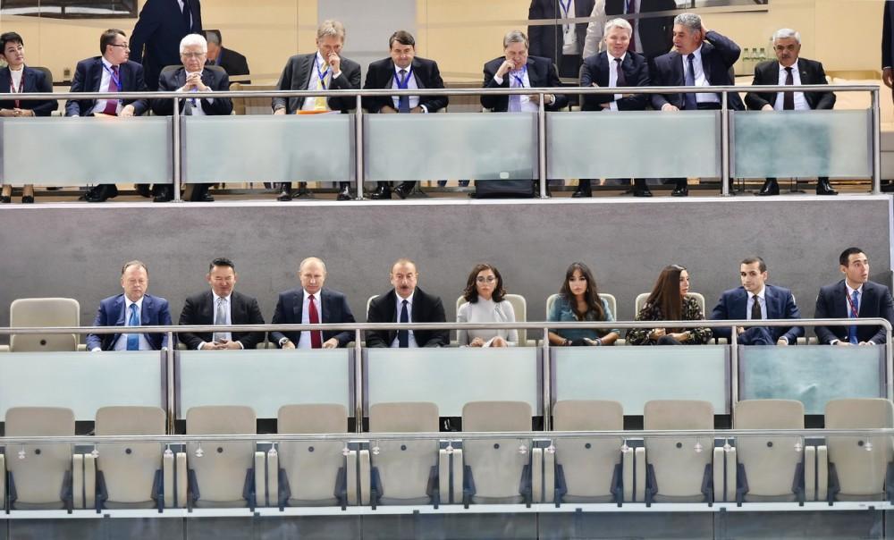 Президент Азербайджана Ильхам Алиев, Первая леди Мехрибан Алиева и члены семьи, находящиеся с рабочим визитом в Азербайджане Президент России Владимир Путин, Президент Монголии Халтмаагийн Баттулга и президент Международной федерации дзюдо Мариус Визер наблюдали за соревнованиями.