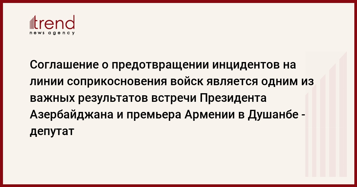 Депутат отметил, что достигнутое соглашение о создании механизмов оперативной связи по предотвращению инцидентов на линии соприкосновения сторон и на границе между Азербайджаном и Арменией стало одним из важных результатов встречи Президента Азербайджана и премьер-министра Армении в Душанбе.