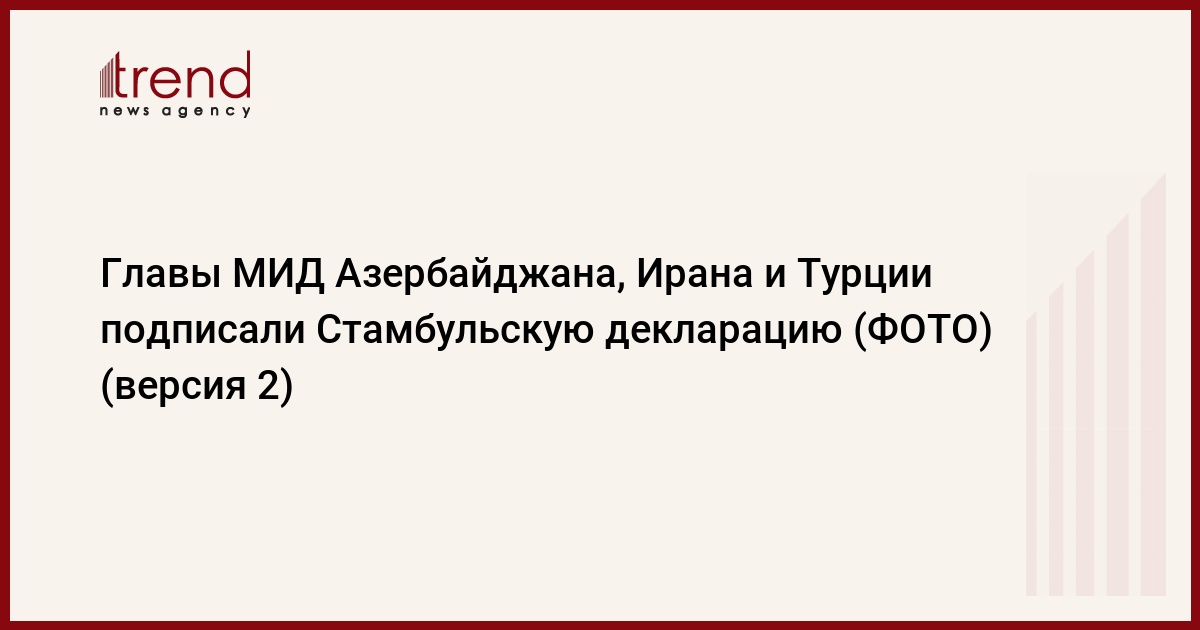 БАКУ /Trend/ - По итогам шестой трехсторонней встречи глав МИД Азербайджана, Ирана и Турции подписана Стамбульская декларация, говорится во вторник в сообщении МИД Азербайджана.
