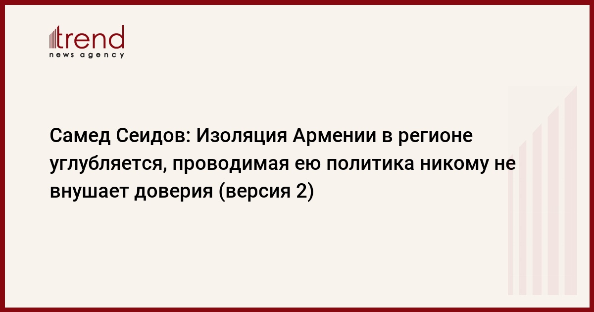 БАКУ /Trend/ - Изоляция Армении в регионе углубляется, проводимая ею политика никому не внушает доверия.