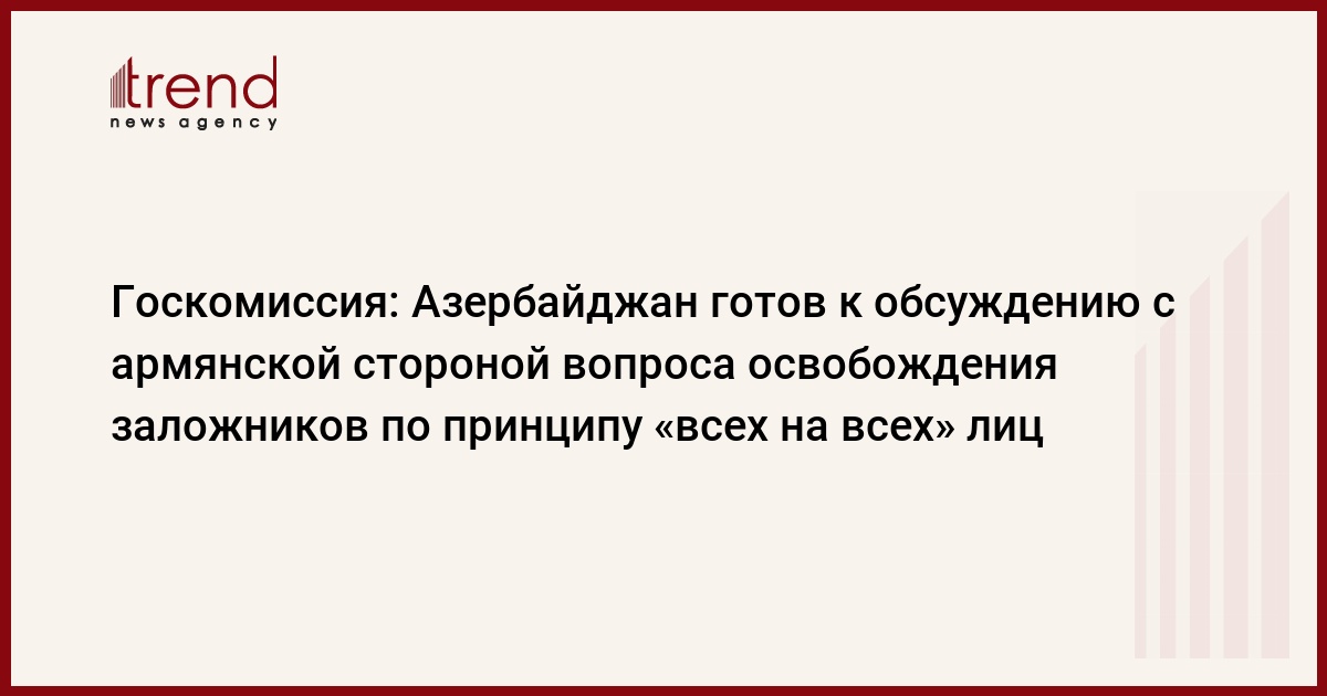 Государственная комиссия Азербайджанской Республики по делам военнопленных, заложников и пропавших без вести граждан довела до внимания сопредседателей МРГ готовность азербайджанской стороны ко встрече, если основным вопросом, вынесенным на обсуждение, будет тема освобождения в короткий срок по принципу «всех на всех» лиц, в настоящее время содержащихся у сторон.