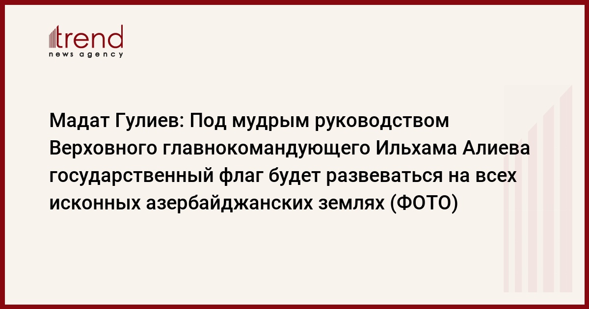 БАКУ /Trend/ - Под мудрым руководством Верховного главнокомандующего Ильхама Алиева государственный флаг будет развеваться на всех исторических и исконных азербайджанских землях.