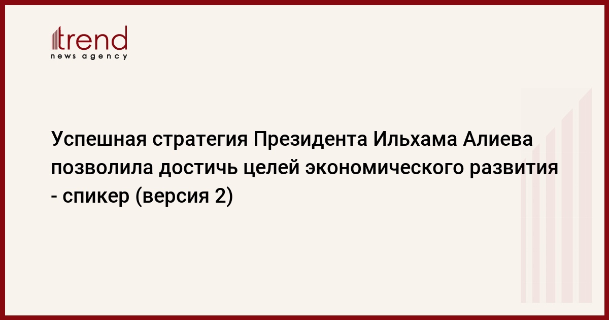 БАКУ /Trend/ - Успешная стратегия Президента Ильхама Алиева позволила достичь целей экономического развития страны. В Азербайджане за девять месяцев 2018 года зарегистрирован рост по всем макроэкономическим показателям. Об этом во вторник на пленарном заседании Милли Меджлиса (парламента) сказал спикер Огтай Асадов.