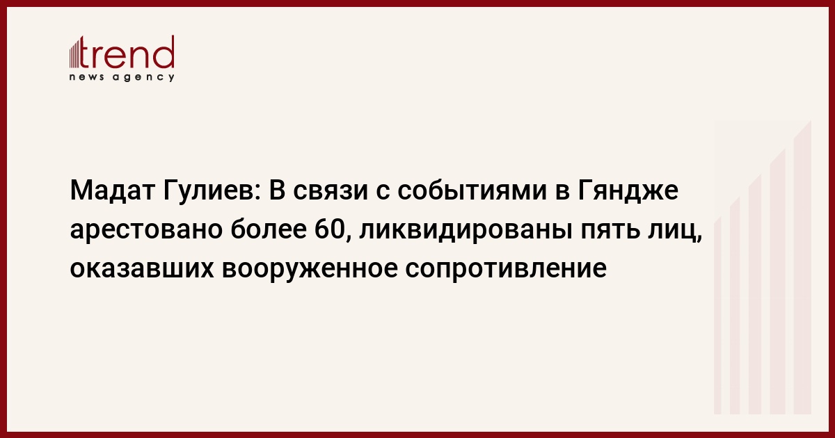 БАКУ /Trend/ - В Азербайджане в связи с событиями в Гяндже арестовано более 60, ликвидированы пять лиц, оказавших вооруженное сопротивление.
