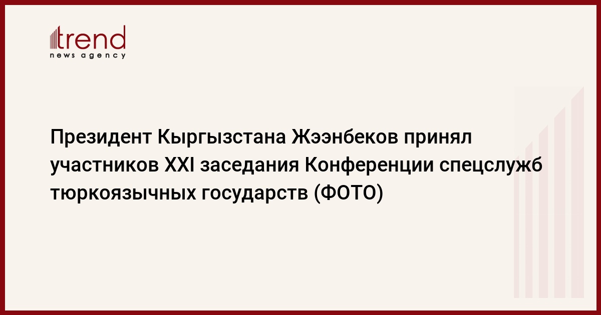 БАКУ /Trend/ - Президент Кыргызстана Сооронбай Жээнбеков принял участников XXI заседания Конференции органов спецслужб тюркоязычных государств (Тюркон).