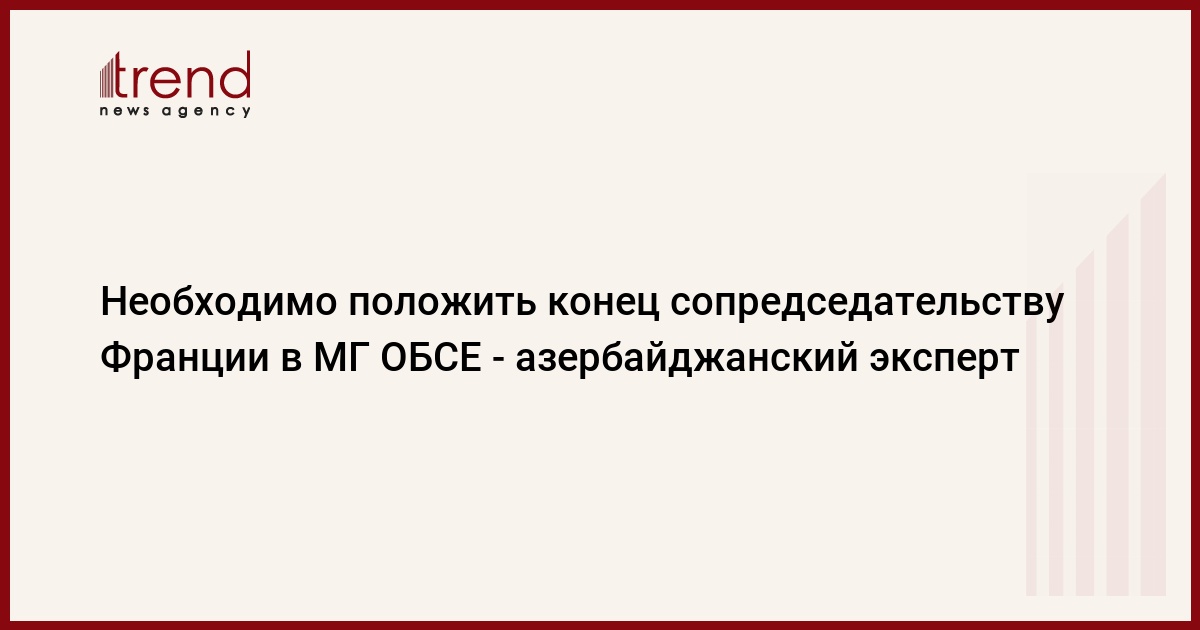 БАКУ /Trend/ - Необходимо положить конец сопредседательству Франции, которая проводит политику под влиянием армянского лобби, в Минской группе ОБСЕ.