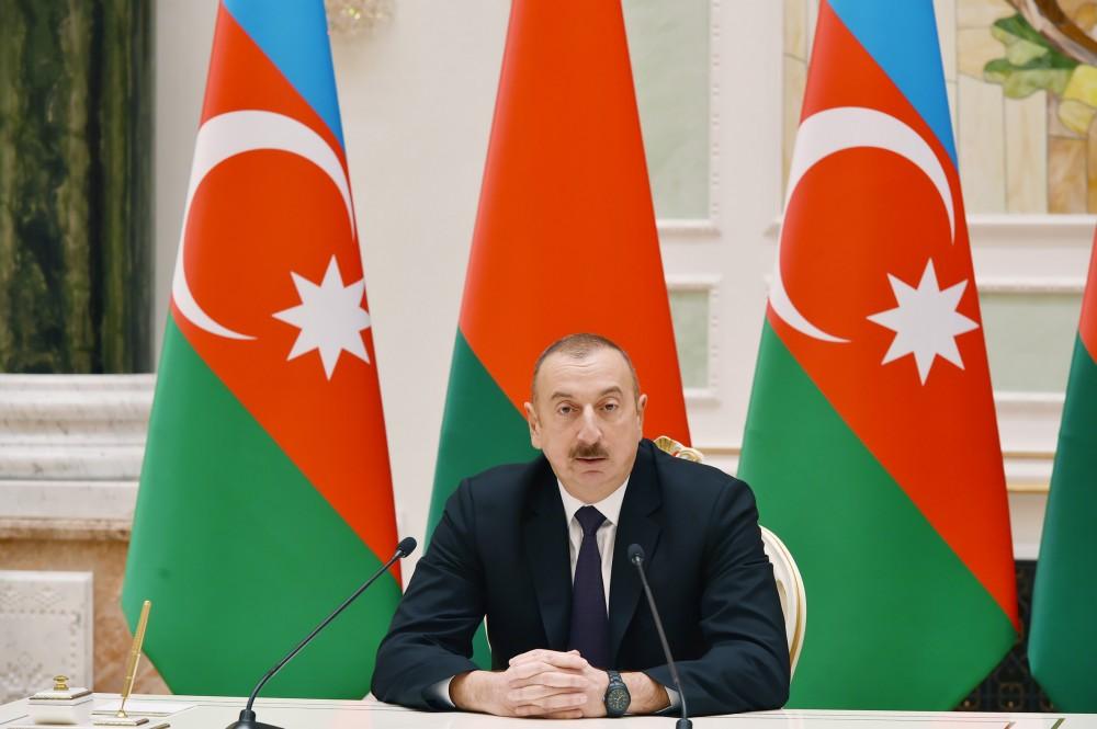 Об этом сказал Президент Азербайджана Ильхам Алиев в понедельник в Минске в совместном с Президентом Беларуси Александром Лукашенко заявлении для печати.