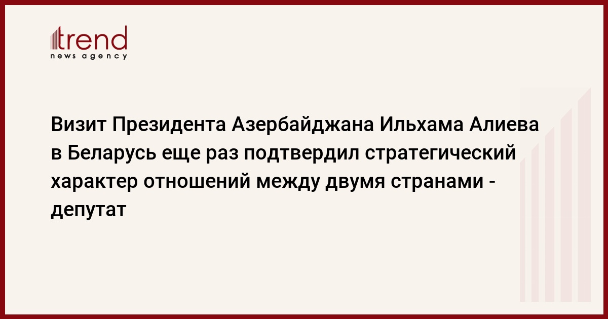 БАКУ /Trend/ - Визит Президента Азербайджана Ильхама Алиева в Беларусь еще раз подтвердил стратегический характер отношений между двумя странами. Об этом сказал Trend депутат Милли Меджлиса (парламента) Азербайджана Эльман Насиров.