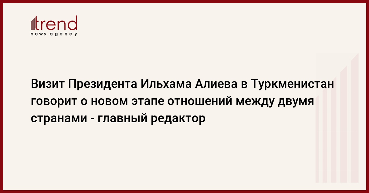 «Отношения между Азербайджаном и Туркменистаном имеют особое значение. Считаю, что визит Президента Ильхама Алиева в Туркменистан свидетельствует о том, что искренние и нерушимые связи между странами, построенные на основе взаимных интересов, вступили в совершенно новый этап», - сказал главный редактор газеты.