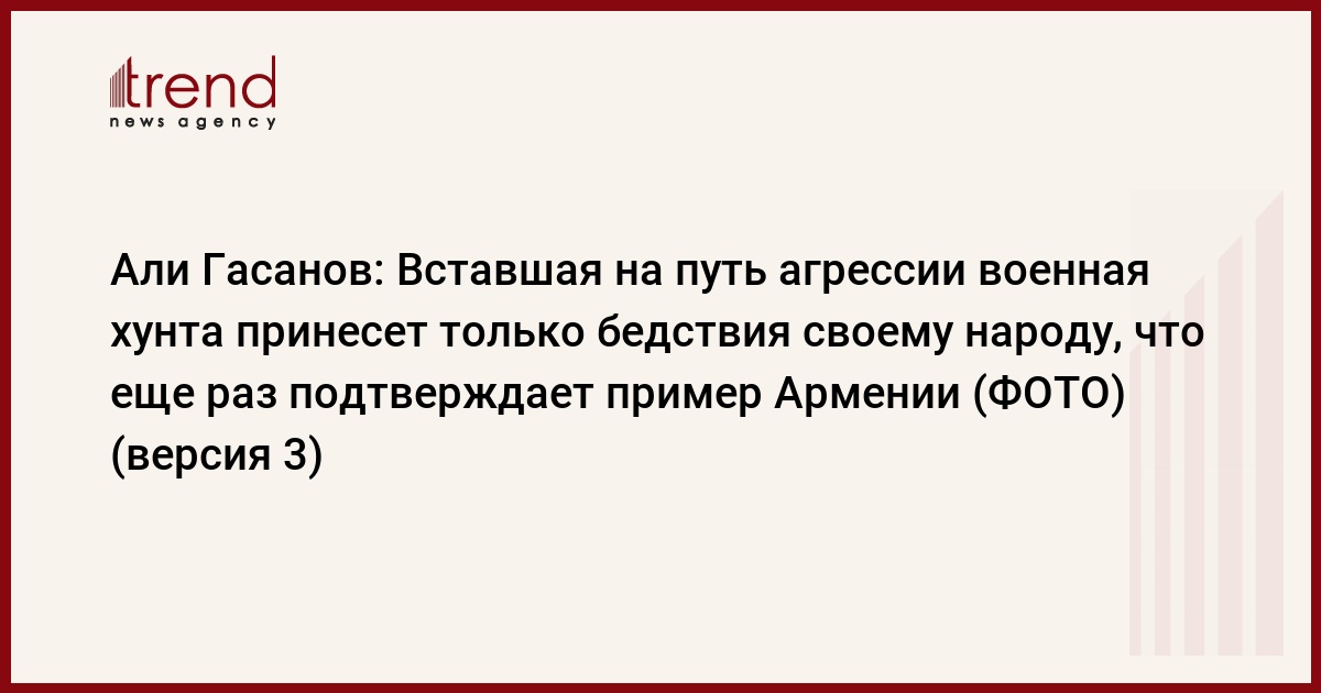 БАКУ /Trend/ - Вставшая на путь агрессии военная хунта принесет только бедствия своему народу, что еще раз подтверждает пример Армении.