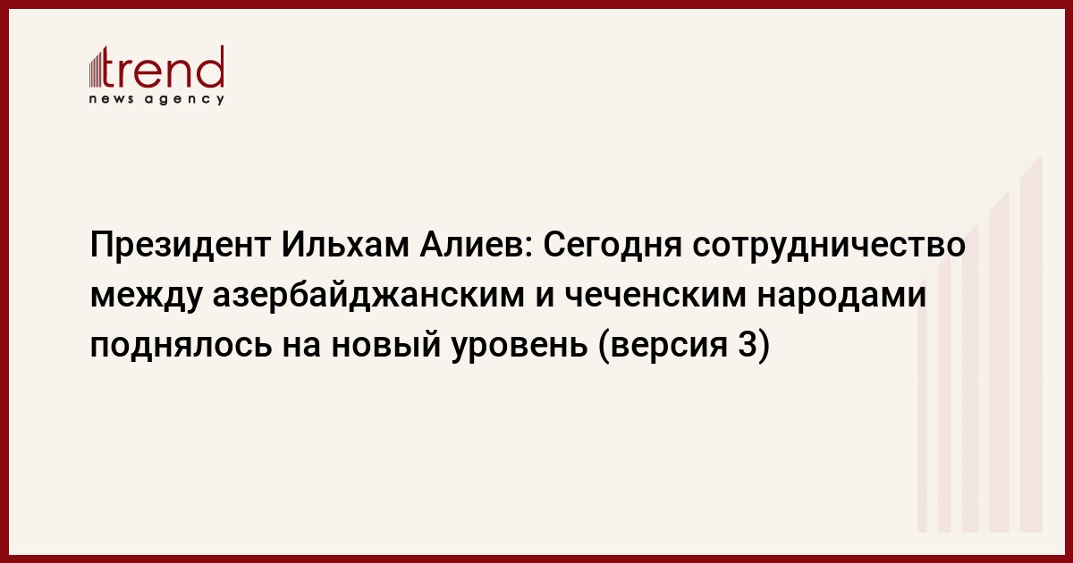 Подчеркнув, что между азербайджанским и чеченским народами исторически существуют дружественные связи, глава государства сказал, что сегодня сотрудничество поднялось на новый уровень.