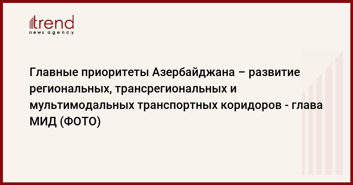 По словам Мамедъярова, среди главных приоритетов азербайджанского правительства – развитие региональных, трансрегиональных и мультимодальных транспортных коридоров в сотрудничестве с соседними государствами вдоль коридоров "Восток-Запад" и "Север-Юг" и другими заинтересованными странами-членами ОБСЕ.