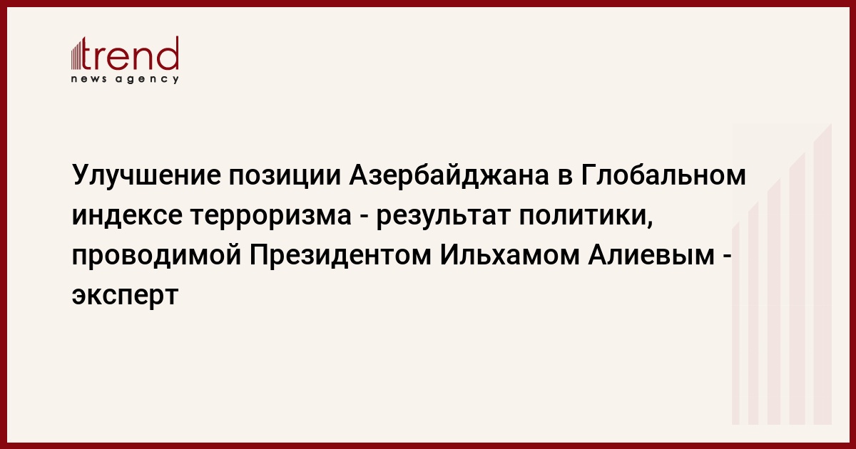 БАКУ /Trend/ - Улучшение позиции Азербайджана в Глобальном индексе терроризма является логическим результатом политики, проводимой Президентом Ильхамом Алиевым.