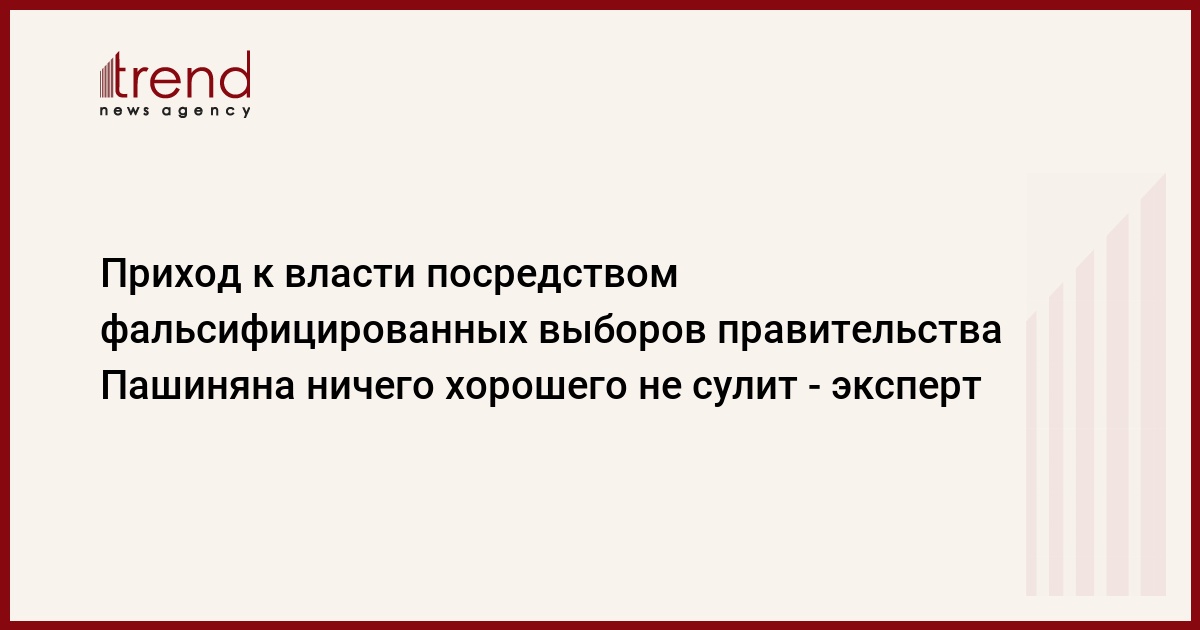 БАКУ /Trend/ - Приход к власти в Армении посредством фальсифицированных выборов правительства Пашиняна ничего хорошего не сулит, сказал Trend главный редактор газеты "Ики сахил" (İki sahil) Вугар Рагимзаде.