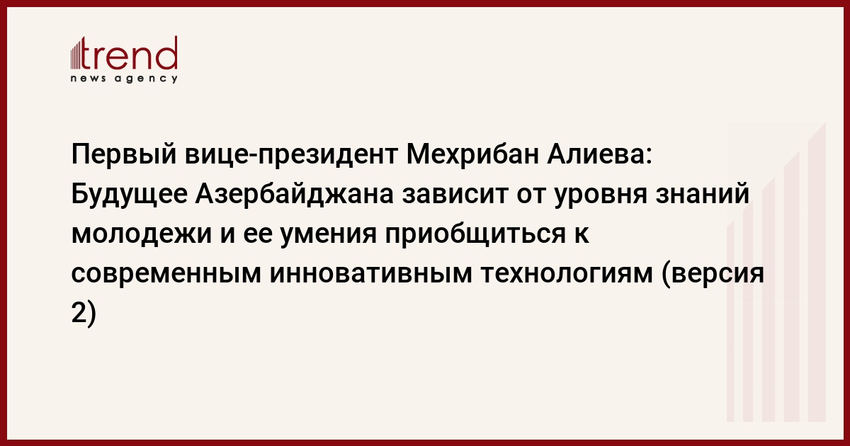 БАКУ /Trend/ - Будущее Азербайджана зависит именно от уровня знаний молодежи и ее умения приобщиться к современным инновативным технологиям.