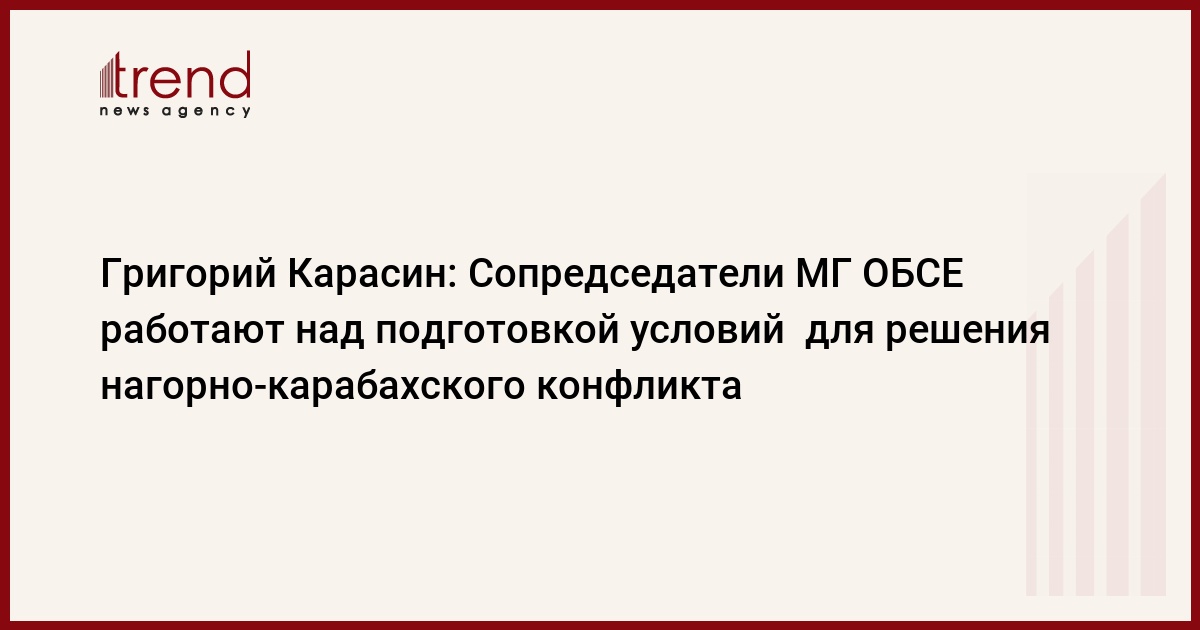 "По-прежнему не решена проблема Нагорного Карабаха, но тройка сопредседателей Минской группы ОБСЕ – Россия, США и Франция – работает солидарно, с целью подготовить условия и создать атмосферу для решения этой весьма сложной проблемы. Будем надеяться, что 2019 год принесет какое-то новое, позитивное развитие конфликтных вопросов на Кавказе", - выразил надежду Григорий Карасин.