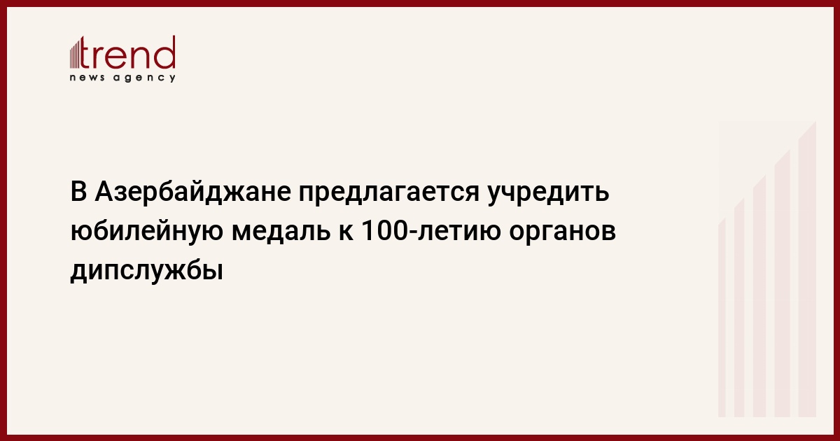 БАКУ /Trend/ - В Азербайджане предлагается учредить юбилейную медаль «100-летие органов дипломатической службы Азербайджана (1919-2019)», сообщает в субботу Trend.