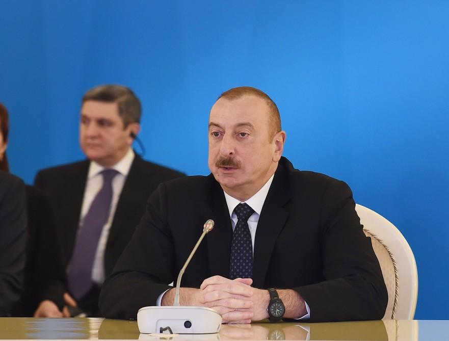 Президент Ильхам Алиев отметил, что Азербайджан является важной транзитной страной с точки зрения транспортировки нефтяных ресурсов, и его роль в регионе, конечно, возрастает. «В 2007 году состоялось открытие газопровода Баку-Тбилиси-Эрзурум, и Азербайджан впервые стал государством, транспортирующим природный газ на международные рынки. Потому что до этого мы импортировали природный газ. То есть, мы стабильно продвигались в направлении Южного газового коридора, являющегося основным энергетическим проектом, и сегодня реализация данного проекта является уже реальностью. Помню, в 2012 году Азербайджан и Турция подписали контракт по проекту TANAP, что явилось точкой отчета Южного газового коридора. Спустя год, в 2013 году, было принято инвестиционное решение по проекту «Шахдениз-2», в том же году Трансадриатический трубопровод был избран как продолжение TANAP. Все это свидетельствует о нашем тесном сотрудничестве с партнерами. Мы можем говорить об успехе в результате того, что работали единой командой», - сказал Президент Азербайджана.