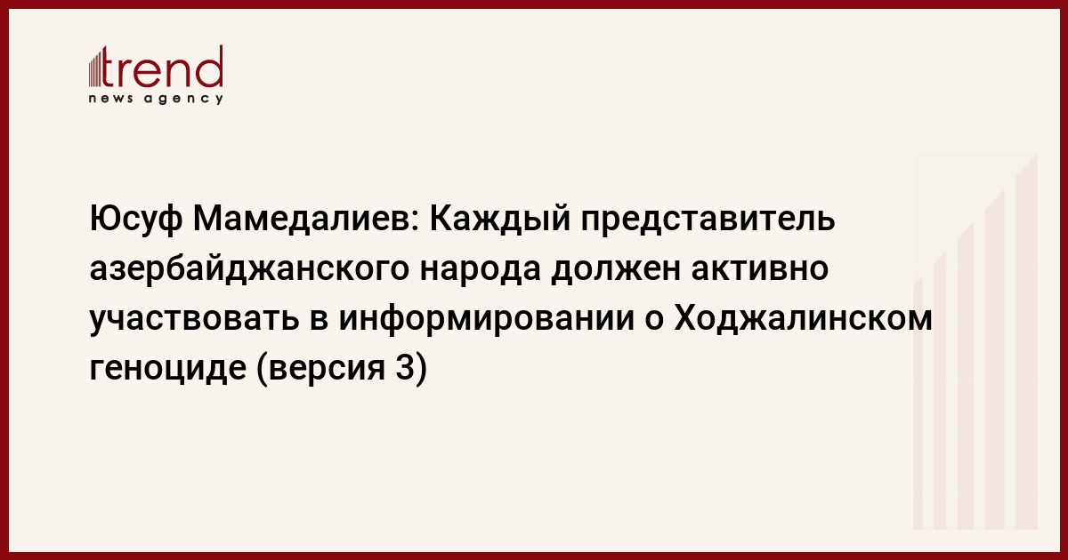БАКУ /Trend/ - Каждый представитель азербайджанского народа должен активно участвовать в деле по информированию и просвещению о Ходжалинском геноциде.