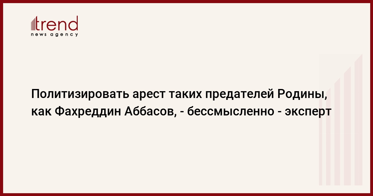 БАКУ /Trend/ - Политизировать арест таких предателей Родины, как Фахреддин Аббасов, - бессмысленно, сказал в среду Trend член Политсовета правящей партии «Ени Азербайджан» (ПЕА), главный редактор газеты "İki sahil" Вугар Рагимзаде.