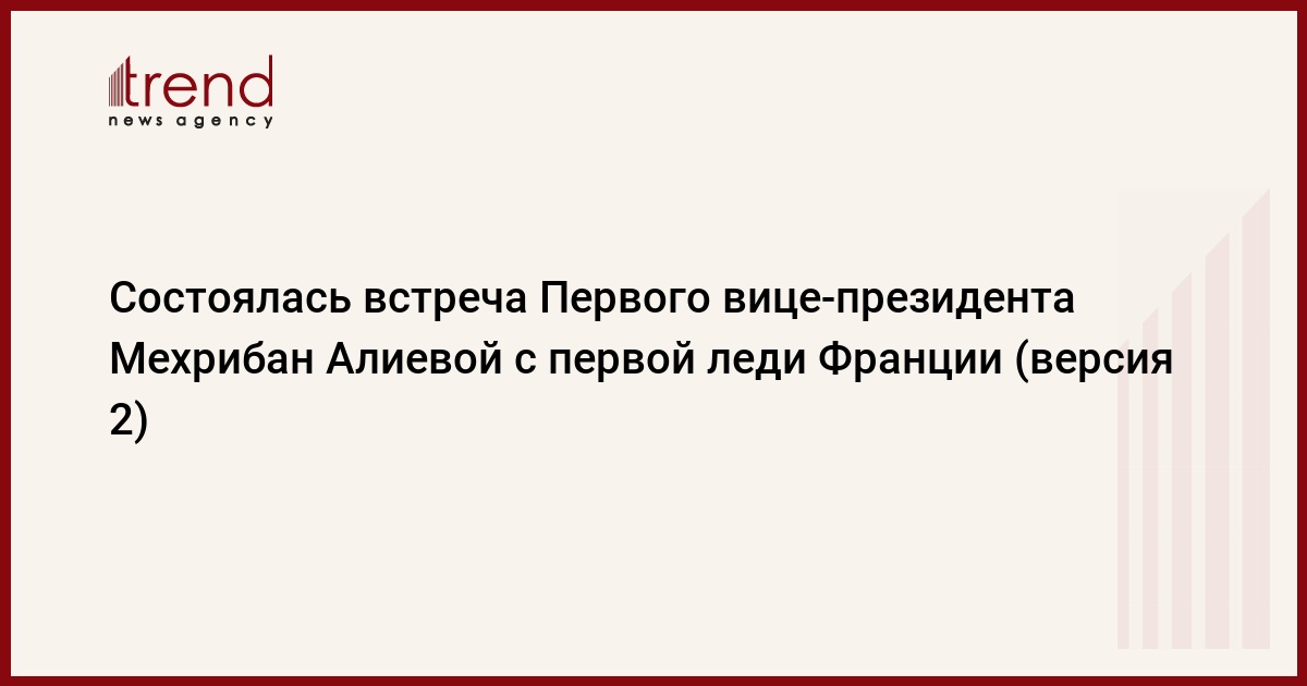 БАКУ /Trend/ - В Елисейском дворце во вторник состоялась встреча Первого вице-президента Азербайджана Мехрибан Алиевой с первой леди Франции Брижит Макрон.