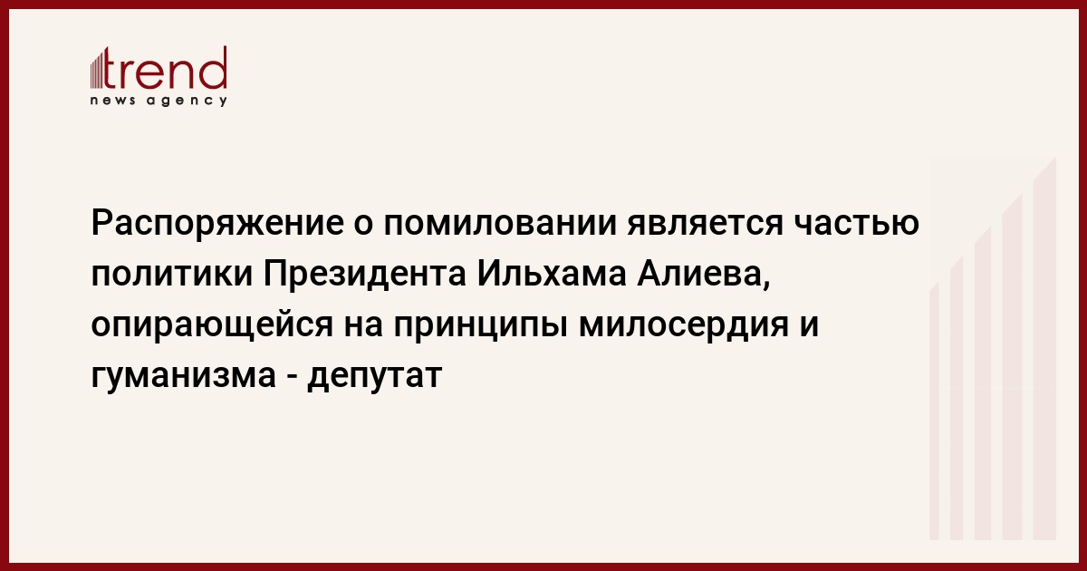 «Древний греческий философ Сократ в ответ на вопрос «Что такое человечность?» сказал «Умение прощать». В этом смысле шаг, предпринятый Президентом Ильхамом Алиевым к празднику Новруз, является ярким примером нравственного величия, основанного на многовековых культурных традициях нашего народа, и является актом гуманизма. Очень хотелось бы, чтобы именно это распоряжение о помиловании усилило атмосферу мира, единства, солидарности, чтобы все наше общество еще теснее сплотилось вокруг единой идеи – идеи азербайджанства», - отметила депутат.