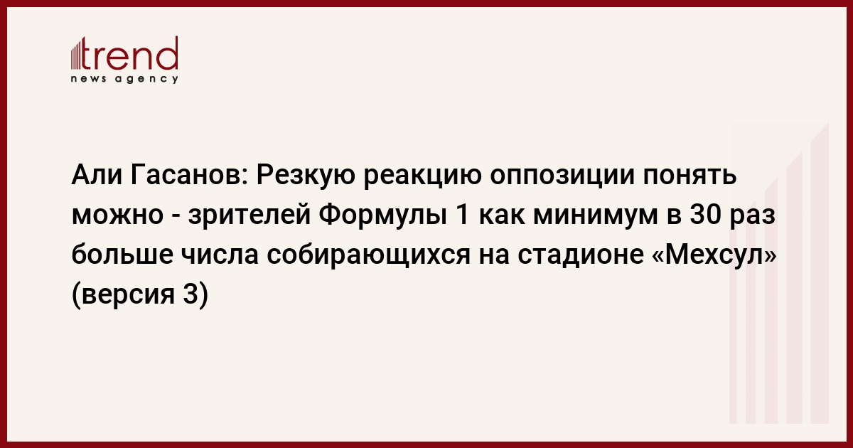 БАКУ /Trend/ - За соревнованиями Гран При Азербайджана Формулы 1 в 2018 году в целом наблюдали 94 миллиона зрителей. Напряженность и столь резкую реакцию оппозиции понять можно: зрителей Формулы 1 как минимум в 30 раз больше числа собирающихся на стадионе «Мехсул».