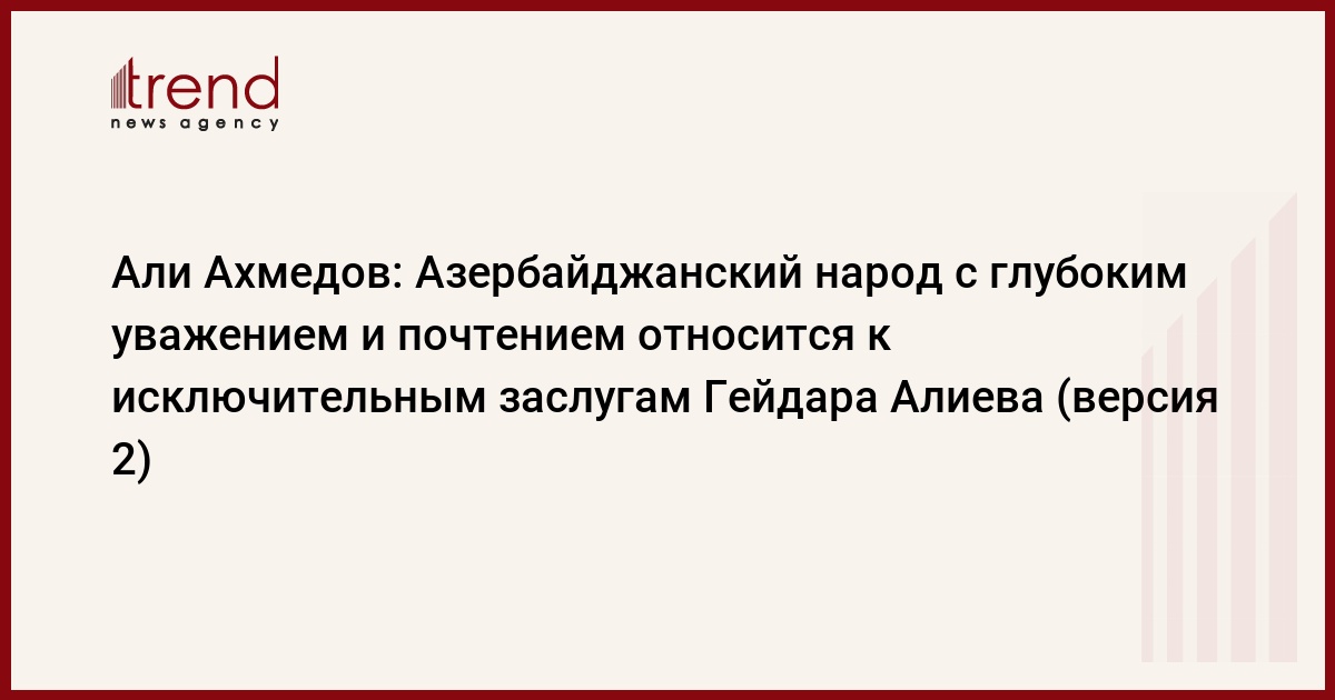 Али Ахмедов отметил, что память о Гейдаре Алиеве не только живет в сердцах людей, но его политика продолжается и сегодня: «Сегодняшний Азербайджан наглядный пример идей Гейдара Алиева. Социальные вопросы всегда занимали значимое место в практике государственности Гейдара Алиева, что тоже может быть одним из объяснений того, что великий лидер продолжает жить в сердцах людей. В центре политики, успешно реализуемой Президентом Ильхамом Алиевым, стоят такие важные задачи как благополучие, улучшение социального положения граждан Азербайджана. Наиважнейшие вопросы, это, во-первых - обеспечение безопасности граждан, во-вторых - улучшение его благосостояния. Азербайджанское государство достойно выполнило обе задачи. Улучшение жизненного уровня людей – одно из главных направлений политики Президента Ильхама Алиева.