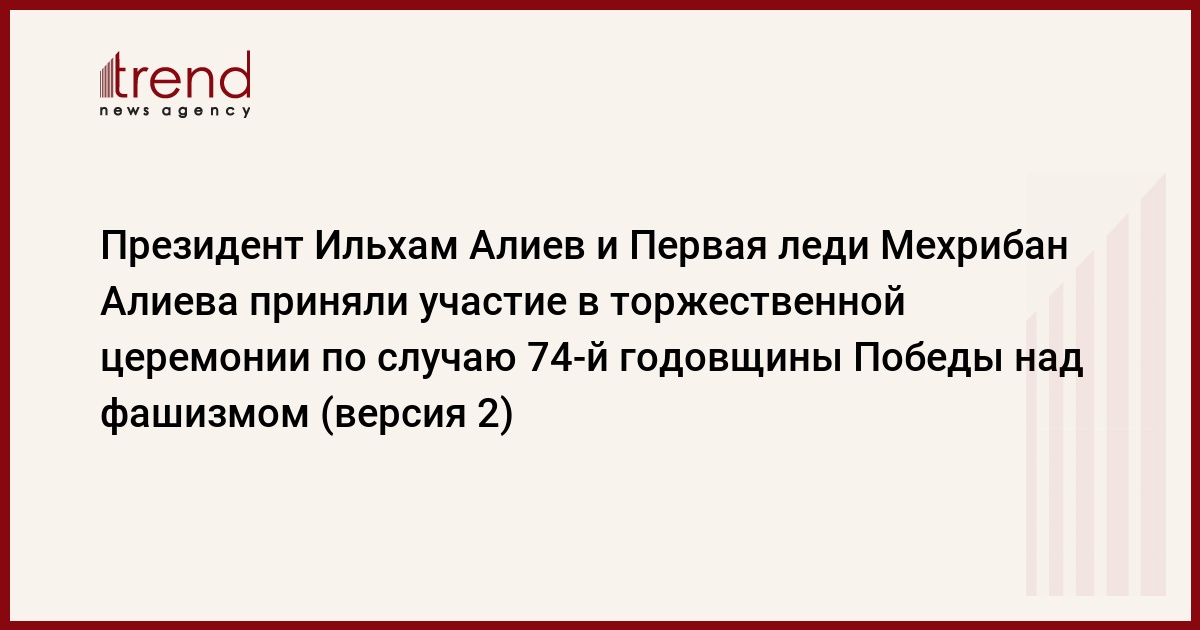 БАКУ /Trend/ - В Баку девятого мая состоялось торжественная церемония, посвященная 74-й годовщине Победы над фашизмом во Второй мировой войне.