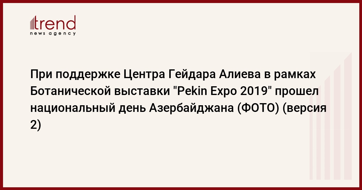 БАКУ /Trend/ - При поддержке Центра Гейдара Алиева в рамках Ботанической выставки "Pekin Eхpo 2019", проводимой в столице КНР, прошел национальный день Азербайджана, сообщает в понедельник Trend.